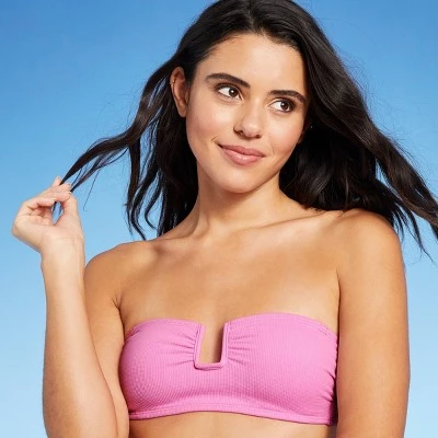 Spend your next beach day or pool party in trendy style with this Textured U-Wire Bandeau Bikini Top from Xhilaration™. You and your friends will fall in love with the textured graph checks in a bright pink color. This bandeau-style bikini top has lightly ruched folds in the middle and a U-shaped cutout for a feminine, fashion-forward design. It comes with detachable over-the-shoulder straps to offer you the comfort of an extra secure fit, and an opaque fabric construction lets you rock this cute top in the full confidence you need for a fun day in the sun. Pair it with the matching bottoms for a cool, coordinated look.