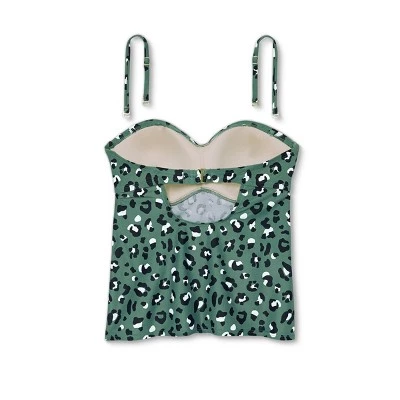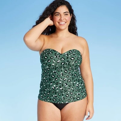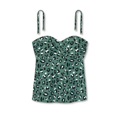 Add comfort and chic style to your beach look with the Bandeau Tankini Top from Kona Sol™. This printed tankini top sports a bandeau cut with a back hook-and-loop fastener and an open back, providing secure wear and a classic, polished aesthetic. Designed with molded cups to offer extra coverage and shaping, this tankini top is crafted from soft fabric with a hint of spandex to go about your sunny-day plans in total comfort. This tankini top features allover animal print with ruching along the neckline for an on-trend look, making this a piece you’ll love to reach for again and again for its function and style.