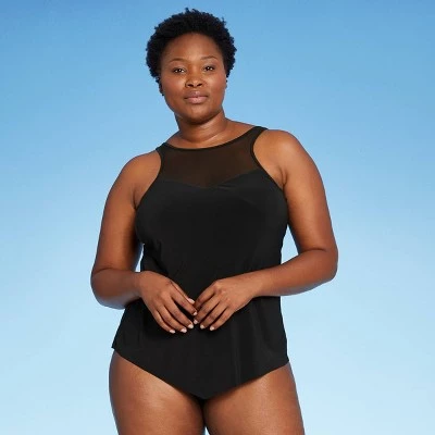 This High-Neck One-Piece Swimsuit from Aqua Green® is sure to become your next favorite swimsuit to wear under the sun. The graceful mesh center insert creates intrigue cascading into the tasteful sweetheart neckline. This is a swimwear staple when it comes to bringing elegance to a timeless style. The removable cups and adjustable straps will create a customizable style while still maintaining modesty with a full modern coverage bottom.