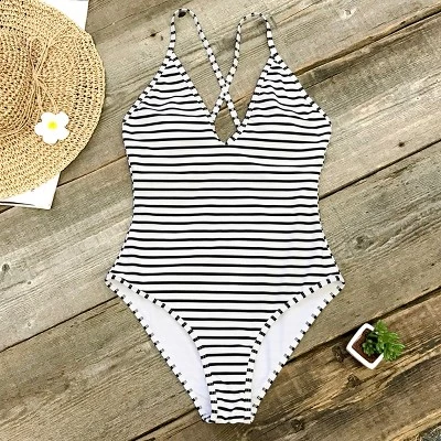 A modern take on black and white stripes. Our Lasting Appeal Stripe Print Crisscross One Piece Swimsuit has a plunging neckline with crisscross adjustable back straps and removable padded cups. We love doubling up on this bathing suits not only wear to the beach, but also as a body suit with jeans!