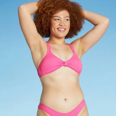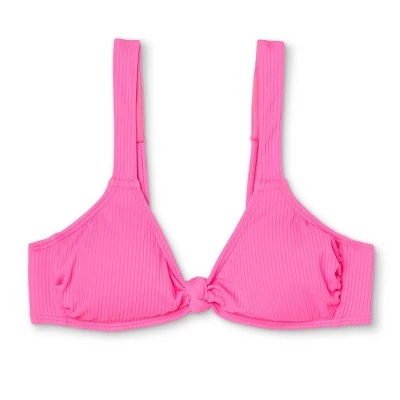 Bring a cute and bold look to your swimwear wardrobe with the Ribbed Knot-Front Bralette Bikini Top from Xhilaration™. This charming bikini top comes with a ribbed fabric and front-twist design that makes for a stunning and adorable look, perfect for days by the pool, lake or beach! Plus, the adjustable straps mean you can change the fit for all-day comfort. The removable cups provide the option to wear the top with or without cups, depending on what’s most comfortable for you. This top is available in extended sizes – Women’s and Women’s Plus. The extended sizes feature added ribcage band for increased bust support and sewn in cups.