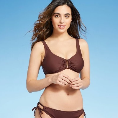 Keep your swimwear versatile and fun with the Rectangle Bralette Bikini Top from Kona Sol™. This women’s bikini top features a modest-coverage design with adjustable straps for an effortlessly stylish look that will have you feeling confident all summer long. Made from soft fabric with added spandex, this bikini top offers comfortable, mobile wear. The keyhole front with rectangular hardware adds flair, and the removable cups let you choose your look, so pair with your favorite bottoms, sun hat and sunglasses for a unique, beach-ready look you will love.