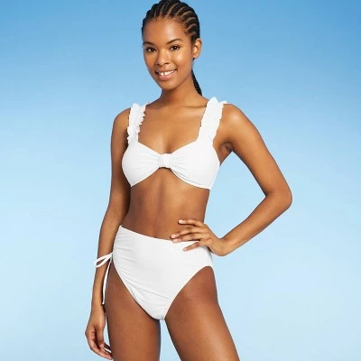 The bride wore White in this Modern Bikini Bottom from Sea Angel. This bottom features a mid-rise brief with a side drawstring detail, fully functional for a variety of wearable options. The bride to be is sure to be the center of attention. Pair this bottom with the matching flounce top and your favorite sarong and your on your way to a day of fun on the beach or by the pool!
