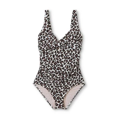 Feel great taking to the water when you slip on the Twist-Front High Coverage One-Piece Swimsuit from Kona Sol™. A one-piece silhouette provides full torso coverage, with a higher placed V-neckline adding some visual interest while providing extra coverage at the bust. Sewn-in cups provide an extra layer of bust coverage to let you lay in the sun or swim in the water with confidence. The swimsuit is available in a brown animal print or dusty brown floral print to give you two playful options to add to your swimwear collection.