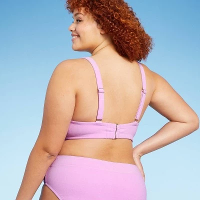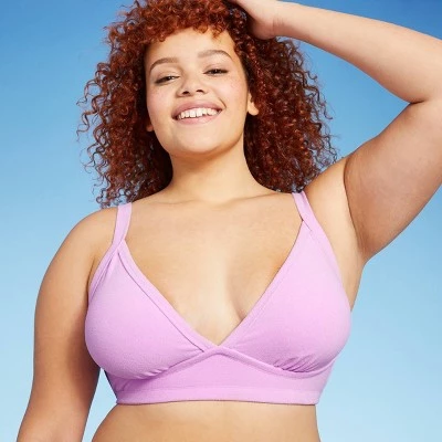 The Terry Triangle Bikini Top from Xhilaration™ is a cute and comfy option for the upcoming beach season. This swim top is fashioned in a light shade of violet-pink and features a terry construction to add a pretty pop of color and texture when paired with a variety of swim bottoms for multiple styling options. The solid-color top has triangle cups with shirred accents and binding edges, as well as a thick underband that fastens at the back with a hook-and-loop closure and keeps it in place. Plus, the adjustable shoulder straps give you the power to make it as snug as you need to feel comfortable, and it’s made from a soft and stretchy fabric that offers you flexible movement in and out of the water.