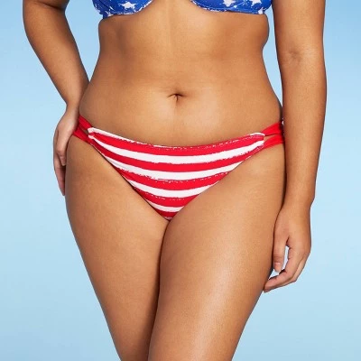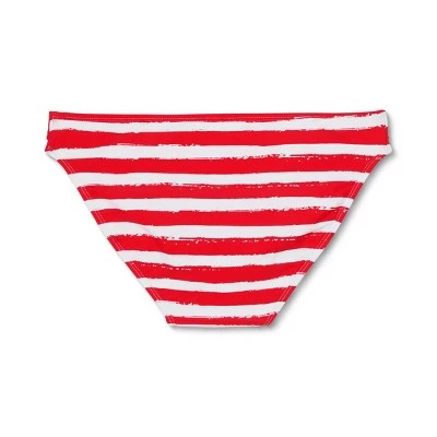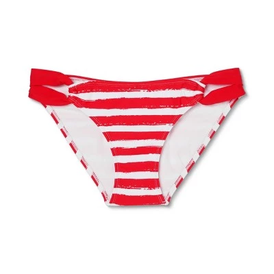 Get in touch with your patriotic side as you enjoy sunny outings with this Scarf Tab Bikini Bottom from Xhilaration™. This pull-on bikini bottom features a low-rise hipster silhouette and side tabs for extra visual interest, while red and white stripes add patriotic flair to your look. They are designed with soft, stretchy fabric that ensures comfortable movement, while a full lining offers coverage for confident wear in and out of the water. Pair this bikini bottom with a matching bikini top for a coordinated look, or wear patterned swim tops for an endless array of styling options.