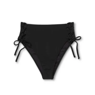 Bring out your edgy side in flattering style with these Lace-Up High-Leg High-Waist Extra Cheeky Bikini Bottoms from Shade & Shore™. The high-waist bikini bottom is crafted from soft, stretchy fabric along with elastic at the leg openings to ensure comfortable movement, while the opaque construction offers coverage for confident wear. The extra cheeky bikini bottom features side ties that give a glimpse of skin for some sass. Pair them with a matching bikini top for a coordinated look, or with other solid-color bikini tops to create your own mix-and-match style.