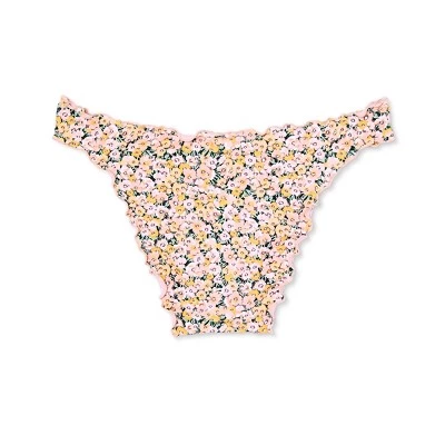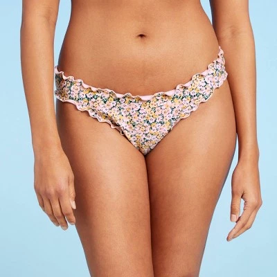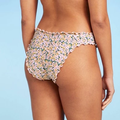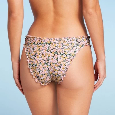 Add pretty frills and florals to your swimwear with this Yellow Floral Ruffle Cheeky Bikini Bottom from Shade & Shore™. This yellow-and-green floral print bikini bottom makes a charming pick in your swim wardrobe. Fashioned with a low-rise cheeky silhouette, it’s detailed with lettuce ruffles on the trim for a sweet touch of texture and style. The stretchy fabric lends comfortable movement, while the fully lined opaque construction offers confident wear. Pair with a matching floral top or a solid-color bikini top for an endless array of styling options.