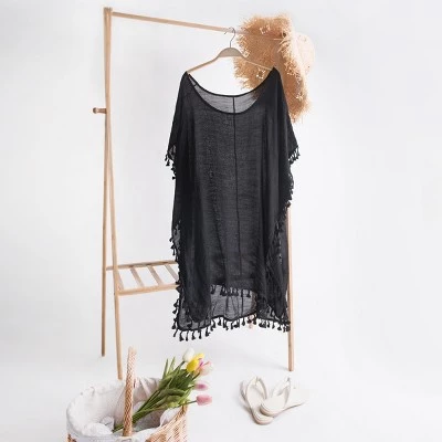Not your average crochet cover up! Wear the Black Round Neck Tassel Cover Up. Features with round neckline and tassels. You can wear a bikini underneath and an added drawstring for a better fit.Product Code: FSK0057BB