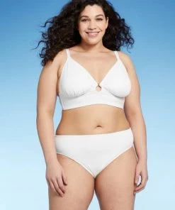 Best Sale 🌟 Juniors’ Plus Size Ribbed Cheeky Hipster Bikini Bottom – Xhilaration™ White 🤩