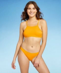 Brand new 🔥 Juniors’ Ribbed Cheeky Bikini Bottom – Xhilaration™ Mango Orange ✔️