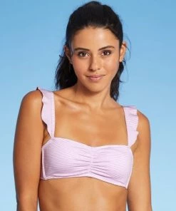 Outlet 🔥 Juniors’ Textured Ruffle Shoulder Bralette Bikini Top – Xhilaration™ Lavender Stripe ❤️