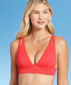 Wholesale 👍 Women’s Cut Out Detail Ribbed Longline Triangle Bikini Top – Shade & Shore™ Coral 🧨