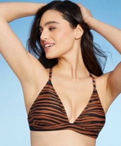 Wholesale 🛒 Women’s Double Tunnel Triangle Bikini Top – Shade & Shore™ Black Animal Print 👍