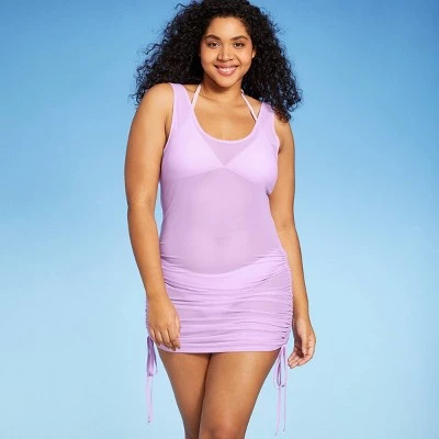 Add soft colors to your swimwear collection with this Tunneled Mesh Cover-Up Tank Dress from Xhilaration™. Designed in a solid color, this lavender cover-up makes for a beautiful addition to your swim collection. The side cinches along with a tie help you customize the length while the mesh design creates an airy feel and flirty style. The mesh cover-up dress is made with a soft and stretchy fabric blend to help keep you comfy whether you’re soaking up the sun or just walking down the beach.
