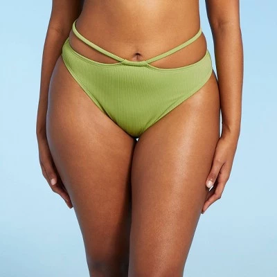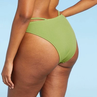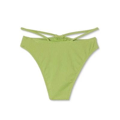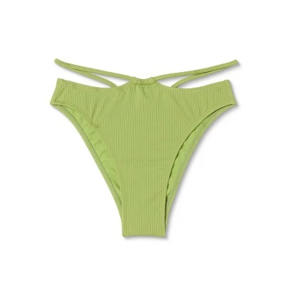 The Ribbed Strappy Extra Cheeky High-Leg Mid-Rise Bikini Bottom from Xhilaration™ is perfect for pool parties or a swim in the water. In a solid olive shade that’s easy to complement with a variety of swim tops and cover-ups for multiple styling options, this pull-on swim bottom is tailored in an extra cheeky cut with a high-leg, mid-rise silhouette for a playful look you’ll love. It’s adorned with allover ribbing and slender strappy accents on the waist for added interest. The ribbed swim bottom is crafted from a soft and lightweight fabric with added spandex to keep you nice and comfortable throughout your sunny adventures. It’s held in place by elastic at the leg openings, allowing you to move freely in and out of the water.