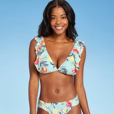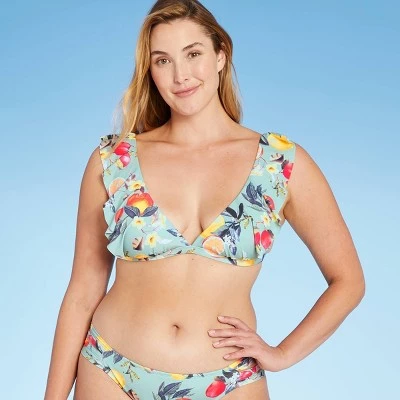 You’ll love the soft, sweet style of this Soft Ruffle Bralette Bikini Top from Kona Sol™. Featuring thick shoulder straps in the front with flouncey ruffle details, this bralette bikini top adds a sweet, feminine look whether you pair it with coordinating or contrasting bikini bottoms. Removable cups and adjustable shoulder straps let you customize your fit and coverage, while a tie-back closure makes it easy to find the perfect feel for you. Plus, an allover pattern of dainty blossoms and colorful fruit provides a standout look you’ll love sporting at the beach or pool.