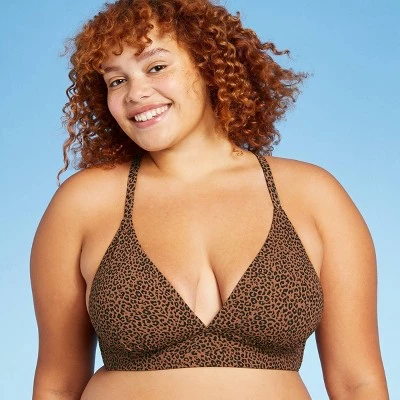 Show off your wilder side with this Ribbed Triangle Bikini Top from Xhilaration™. A fun animal print and triangle silhouette bring just the right amount of style to your swimwear look, and the stretchy fabric helps keep you comfortable throughout the day. With sewn-in cups, opaque material and a crisscross back with tie closure, this bikini top gives you a comfortably chic swimming experience. Pair this ribbed triangle bikini top with matching bottoms and your favorite floppy hat for a complete look.