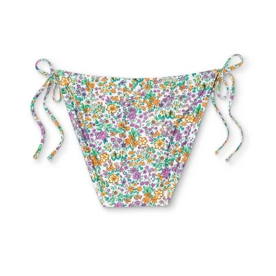 Bring cool and playful style to your swimwear this summer with the Juniors’ String Hipster Bikini Bottom by Xhilaration™. This cute swimsuit bottom features a floral pattern with orange, white, purple and green hues—perfectly vibrant for bright summer days! The hipster design offers comfortable coverage and playful style, plus the elastic at the leg opening makes for extra stretch for easy movement.