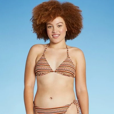 The Textured Triangle Bikini Top from Xhilaration™ is perfect for a day of fun in the sun. This cute bikini top comes in a triangle cut and features a textured stripe pattern in vibrant colors for a bright look. It has a halter and back tie to ensure a secure and personalized fit. The striped bikini top is made from a soft and stretchy fabric that offers you flexible movement whether you are swimming or lounging along the shore and more. Wear it with matching bottoms and your fave beach accessories to finish the look.