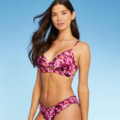 Whether you’re walking along the beach or relaxing poolside, this Tall Triangle Bralette Bikini Top from Shade & Shore™ is a must-have companion for the water. The bikini top features a keyhole cut-out feature and a double band silhouette that add visual interest. It’s made with a soft, flexible fabric to keep you moving comfortably, while removable cups customize your coverage level, and the underwire provides lift. Plus, the back hook closure and adjustable straps help you find a secure and customized fit. Pair this cut-out bralette swim top with the matching tie-dye bikini bottom for a look you’ll love to flaunt.