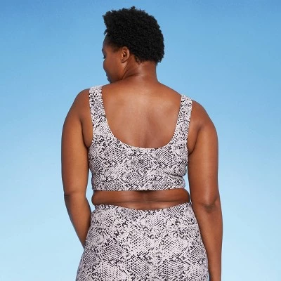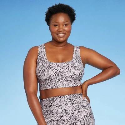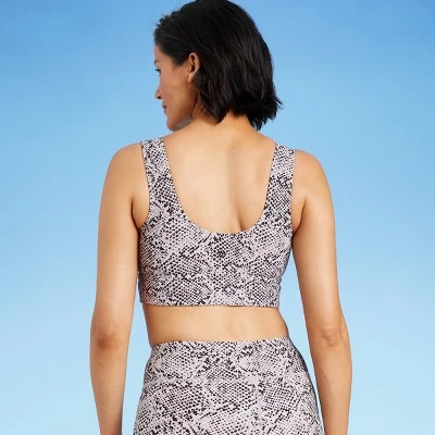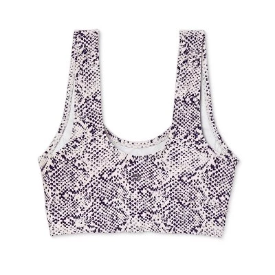 Add functional style to your swimwear collection with this longline wide-strap bikini top. The longline silhouette and pull-on style provide an athletic look and feel, and the snake print adds extra visual interest. This piece offers comfy wear in a soft recycled polyester fabric with a touch of spandex, and a full opaque lining provides coverage in and out of the water. Providing not just style but substance, this swim top’s UPF 50+ rated material helps block the sun’s harsh UV rays, and the removable cups provide customizable coverage.