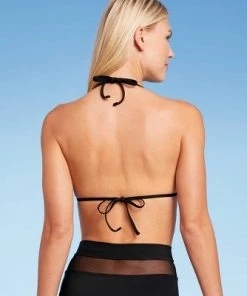 Relax poolside or walk along the shore in comfort and style wearing this Mesh Triangle Bikini Top from Shade & Shore™. Crafted from a soft fabric with added spandex for easy movement, this bikini top features an adjustable halter and tie back to help you find the perfect fit. Plus, the removable cups allow for customizable coverage. In a black hue, this playful bikini top comes in a triangle cut with a mesh insert to show a hint of skin. Pair it with solid or patterned swim bottoms to create your own chic swimwear outfits.