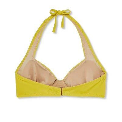 This Shirred Cup Halter Bikini Top from Shade & Shore™ is a great pick for swimming and sunbathing. Crafted from a soft fabric with added spandex for easy movement, this bikini top features an underwire construction and a gathered design on the cups for extra support and subtle shaping. Adjustable halter strap ties and a back hook fastener help you find the best fit, while the removable cups provide customizable coverage. In a chartreuse hue, you can mix and match this bikini top with contrasting or solid-hued bottoms to bring chic style to your sunny escapades.