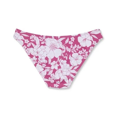 Enjoy beach days in playful style wearing this Ribbed Cheeky High V-Leg Bikini Bottom from Xhilaration™. Covered with a white berry print, this berry pink bikini top helps you maintain a sweet and fresh look whether you’re having fun in the waves or just enjoying the sunny day lounging by the pool. This cheeky bikini bottom is made with a soft and stretchy fabric with elastic at the leg openings to offer flexible movement both in and out of the water. The printed design with low-rise silhouette makes this V-leg bikini bottom fun to pair with both solid-color and printed swim tops to help you create a variety of beach-ready looks.
