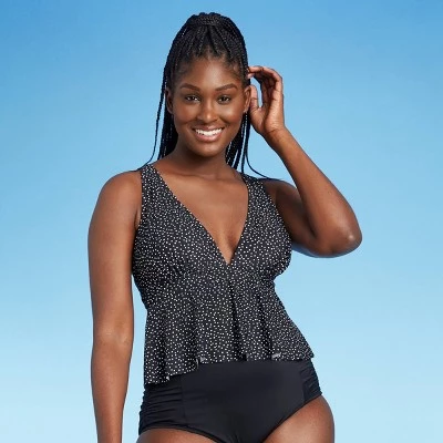 Add a cute and comfortable swim top to your waterside wardrobe with the Peplum V-Neck Cropped Tankini Top from Kona Sol™. This V-neck tankini features thick, adjustable straps for a customizable fit that doesn’t dig into your shoulders, and it boasts a cute cropped design with ruffle detail for an adorable look that skims your curves and your choice of swim bottoms. Sewn-in cups provide comfortable coverage for all-day confidence, and elastic under the bust helps the top stay in place to move with you while you enjoy a swim or just soak up some sun.