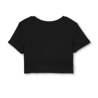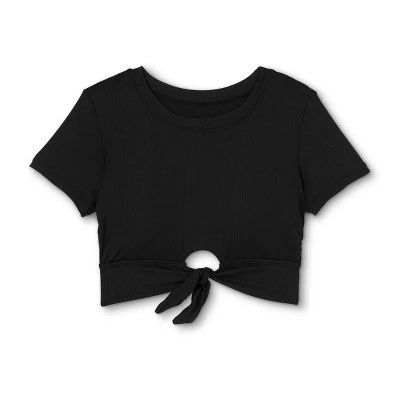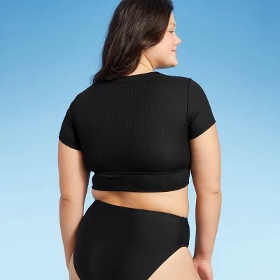 Your new go-to cap sleeve Bikini Top in Black from Sea Angel is here! Featuring a scoop neck, cropped silhouette with tie-front for a sweet and sporty style. Effortless pull-on style with supportive underbust band. This top is versatile enough to be worn both on the beach and off, as a crop top with jeans.