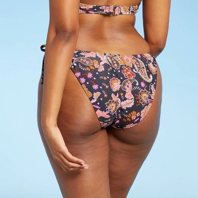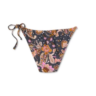 Take your vacay look to the next level with the Asymmetrical String High-Leg Scoop Bikini Bottom from Xhilaration™. This pull-on swim bottom is adorned with a vibrant floral-paisley print on a black background to spruce up your waterside look with a lively splash of color. It has tunneled string ties on the left side for a customized fit and a standout asymmetrical accent. The low-rise swim bottom is crafted from a soft and lightweight fabric with added spandex to keep you nice and comfortable throughout your sunny adventures. Pair with a matching swim top for a cohesive look, or mix it up with a solid-hued top that matches any shade of the lovely print.