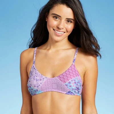 Work pretty patterns into your swimwear collection with the Bralette Bikini Top from Xhilaration™. This bralette swim top is adorned with a patchwork-like multi-pattern look in soft shades, and features a shapely sweetheart neckline with slender shoulder straps and a lace-up crisscross back with string ties to give you a secure and customized fit. The printed bikini top is made from a soft, stretchy fabric that offers you flexible movement whether you are swimming, lounging along the shore and more. Round out your look with a matching bottom, or mix it up with a solid bottom in a coordinating or contrasting color to create a look that’s completely your own.