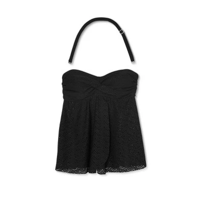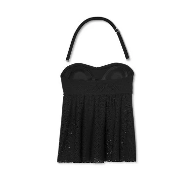 You’ll love how easy it easy to enjoy any day by the water in the comfy-chic style of this Crochet Bandeau Flyaway Tankini Top from Isabel Maternity by Ingrid & Isabel™. Made with a touch of spandex to help accommodate your growing bump, this maternity tankini top features a solid black color with an allover crochet pattern for a sweet textured look. The twist accent at the bandeau bust adds stylish flair, while the tie accent at the back completes the charming design. With sewn-in cups for added comfort and coverage, this black maternity tankini top is easy to coordinate with a range of bottoms for chic pool or beach style.