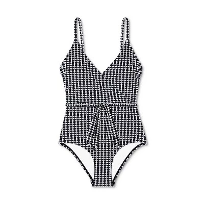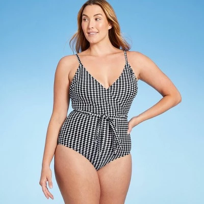 For a striking swimsuit that shows off your chic sense of style, look no further than the Belted Wrap Medium Coverage One-Piece Swimsuit from Kona Solโข. A wrap-style V-neckline adds a touch of flirtiness to the modest one-piece silhouette, and removable cups let you choose how much bust coverage you want from one wear to the next. A tie belt lets you cinch in the waist to create a figure-flattering look, and an allover black and white pattern adds a sophisticated finish. Simply slip on a pair of palazzo pants to take the swimsuit from the water to your next outing.