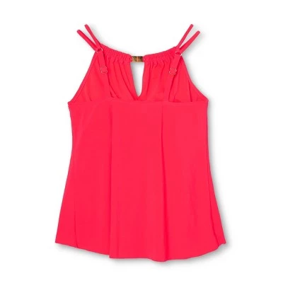 Feel absolutely fabulous in this striking tankini top at your next vacation getaway. The design of this swimsuit offers a high double tunnel neckline featuring a center front keyhole feature with gold hardware detailing exuding elegance. Pair this swim top with your favorite Aqua GreenĀ® bottoms. This style has adjustable straps in addition to removable straps for a customizable fit.