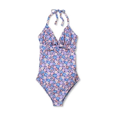 - Wrap-front halter one-piece swimsuit updates your swimwear collection