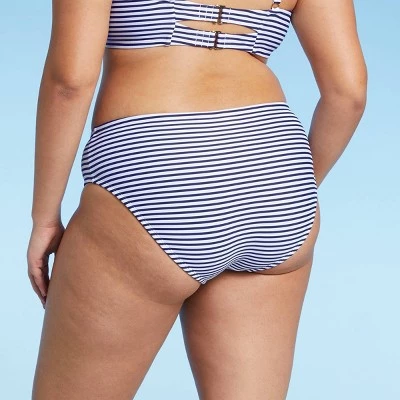 Update your beachwear with this Cheeky Hipster Bikini Bottom from Xhilarationā¢. This cheeky bikini bottom features a low-rise hipster cut for on-trend style, and a navy and white stripe print to bring nautical flair to your swimwear. The stretchy fabric lends comfortable movement and fit, while the full lining offers confident wear. Pair with the available matching bikini top for a cohesive look, or with other swim tops for an endless array of styling options.