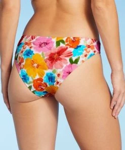 Add a cheerful touch of florals to your poolside look with this Pink Floral Cheeky Bikini Bottom from Shade & Shore™. This cheeky bikini bottom cut in a low-rise silhouette brings on-trend style to your swimwear. It features a colorful floral print against a white backdrop for an attractive, vibrant look. The stretchy fabric with elastic at the leg openings provides easy movement, while the opaque construction offers coverage for confident wear. Pair with the available matching bikini top for a cohesive look, or with solid-color bikini tops to create your own mix-and-match style.