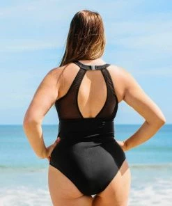 Feel cute with this black mesh plus size one piece swimsuit. Features high neck and mesh details for a flattering fit. Get all the sexy vibes with cutout detailing.Product Code: APL0004BB