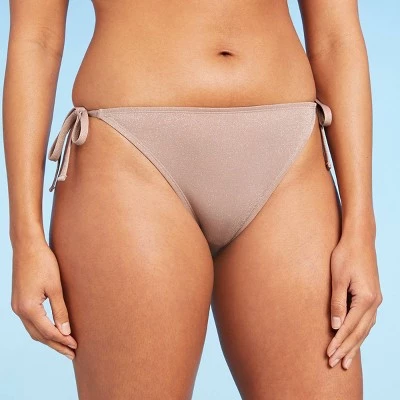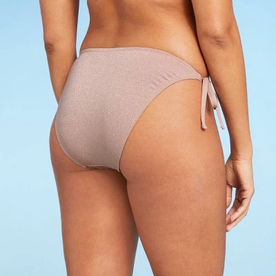 Add a sparkly finish to your poolside look with this Light Mauve Lurex Side-Tie Cheeky Bikini Bottom from Shade & Shore™. This light mauve bikini bottom accented with a touch of lurex brings fancy shine to your swim wardrobe. Featuring a cheeky low-rise cut for on-trend style, the side string ties make a great accent and also help you achieve the perfect fit. The stretchy fabric lends comfortable movement, while the fully lined opaque construction offers coverage for confident wear. Pair with the available matching bikini top, or with other bikini tops for different styling options.