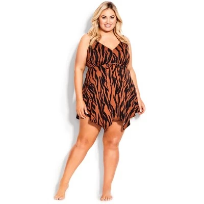 Ready up for a summer filled with bliss and relaxation in the tiger Mauritius Swim Dress. Fearlessly fierce, this swim dress features a trapeze hemline, an inbuilt shelf bra and a tie feature waist.Avenue is a leading plus size brand specializing in the perfect fit for sizes 12 – 32