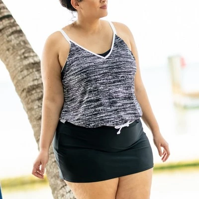For feminine flair without sacrificing your comfort, this stylish swim skirt can go anywhere you take your favorite board shorts. A built-in brief keeps you covered, with an adjustable drawstring waist for a secure fit. Our signature quick-dry fabric lets you keep moving in and out of the water. Contrasting color waistband lets you perfectly pair with your favorite Free Country tankini for a signature look thatรญs all your own.