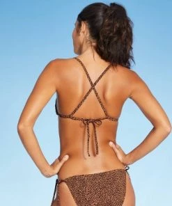 Bring a fun touch of the wild to your swim style with the Ribbed Triangle Bikini Top from Xhilarationā¢. This cute bikini top comes in a triangle cut and features a black leopard print against a brown rib textured background for a lively, fierce look. It boasts double spaghetti straps at the ribcage for added support and an X design at the back that meets with the completely adjustable back-tie closure for a secure and personalized fit. The ribbed animal-print bikini top is made from a soft and stretchy fabric that offers you flexible movement whether you are swimming or lounging along the shore and more. Wear it with matching bottoms and your fave beach accessories to finish the look.