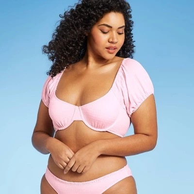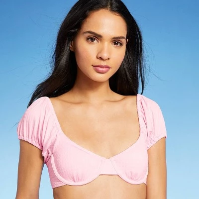 - Textured puff sleeve underwire bikini top perfect for days spent at the beach or in the pool