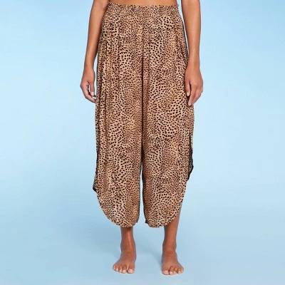 These Front Slit Cover-Up Pants from Shade & Shore™ takes you from beach lounging during the day to the boardwalk in roaring style. The cover-up pants showcase an allover animal print to bring a fun look to your after-swim looks. It features a relaxed silhouette with front slits for easygoing style and more room for movement. The lightweight fabric ensures cool comfort, while the elasticized waist ensures quick and easy wear. Simply pull on these swim cover-up pants over your favorite suits, and add a floppy hat and a pair of oversized shades to complete your laid-back style.