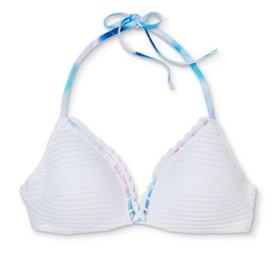 Add unique style to your swimwear ensemble with this Light Lift Crochet Bikini Top from Shade & Shore™. This bikini top has a solid-color front with tie-dye sides and back, and ribbon trim that lends a sweet touch of texture to the mix. The stretch material offers flexible movement and wear, while the molded cups offer light lift and structure. Pair this crochet bikini top with matching tie-dye bikini bottoms and accessorize your look with a pair of sunglasses and a floppy hat to complete your breezy beach outfit.