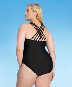 Whether swimming in the water or just basking on the shore, you’ll look and feel great in the Strappy Back One-Piece Swimsuit from Kona Sol™. With its classic one-piece silhouette and basic black color, this swimsuit has a classic, chic look that’s taken up a notch by thick straps separating into three thinner straps each in the back for a striking look. Sewn-in cups help to keep you covered for confident wear, and shirring at the sides and across the stomach help to create a flattering silhouette.