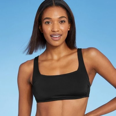 Enjoy the style of a bikini but with a bit more coverage when you put on the Simple Square Neck Over the Shoulder Bikini Top from Kona Sol™. This bikini top has a square neckline that provides higher bust coverage, with removable cups letting you decide how much extra coverage you’d like. A swan hook closure or fully adjustable tie back closure holds the top securely on as you swim, stroll or sun, and adjustable straps help you to find the fit that feels best. The square neck swim top comes in a variety of solid colors, giving you the option to pair with a matching or contrasting solid color swim bottom, or with a patterned swim bottom with complementing colors.