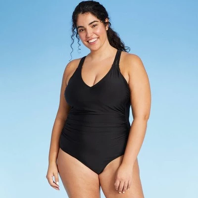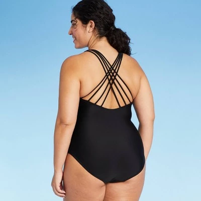 You’ll look and feel great whether swimming in the water or just basking on the shore in the Strappy Back High-Coverage One-Piece Swimsuit from Kona Solโข. A high-coverage one-piece silhouette provides full torso and seat coverage, and sewn-in cups balance out the V-neckline of the swimsuit with some extra coverage. The simple one-piece style is taken up a notch by thick straps that separate into three thinner straps each in the back for striking detail, and shirring at the sides and across the stomach help to create a flattering look. Opt for the solid black swimsuit for a sleek and chic piece, or go bold with the leopard print option.